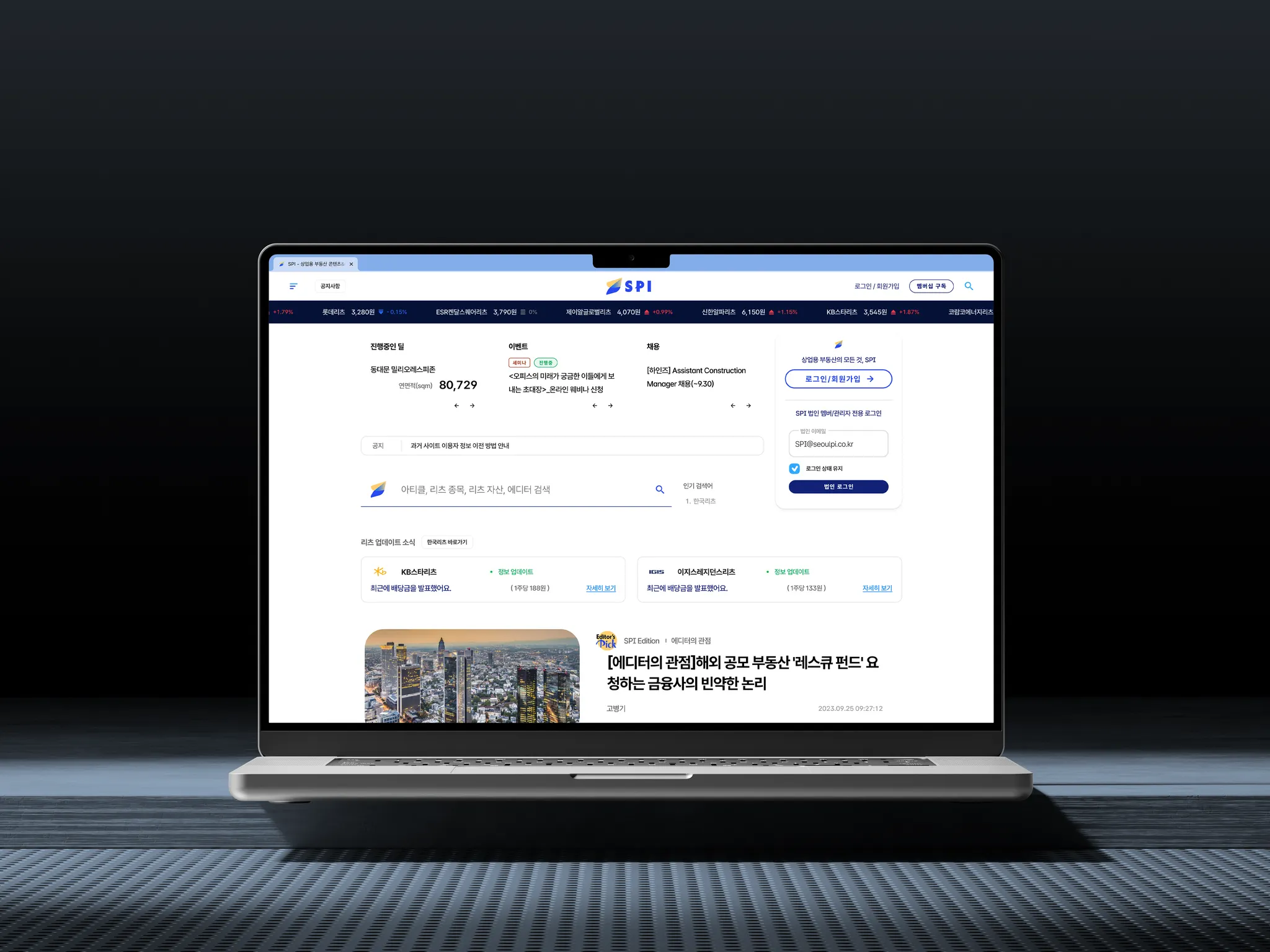 서비스 메인 화면 업데이트를 통해 국내 유일의 상업용 부동산 전문 정보 포털로서의 SPI의 성격 및 역할과 좀 더 어울리는 향상된 디자인 및 기능을 제공하고, 이를 바탕으로 SPI 이용자께서는 보다 향상된 사용자 경험 및 이용 환경을 만나보실 수 있을 것으로 기대합니다.