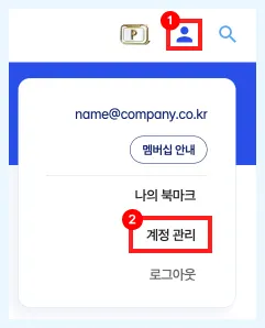 ① 홈 우상단의 계정 아이콘 클릭 후,