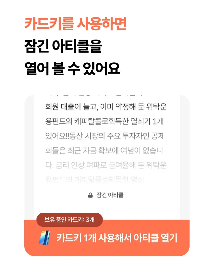 처음 선보이는 ‘카드키’는 개별 유료 아티클을 열어 볼 수 있는 일종의 열람권입니다. 오늘(24.2.26)부터 신규 개인회원가입 시 열람권 기능을 하는 ‘카드키’ 3장을 무료로 제공합니다.